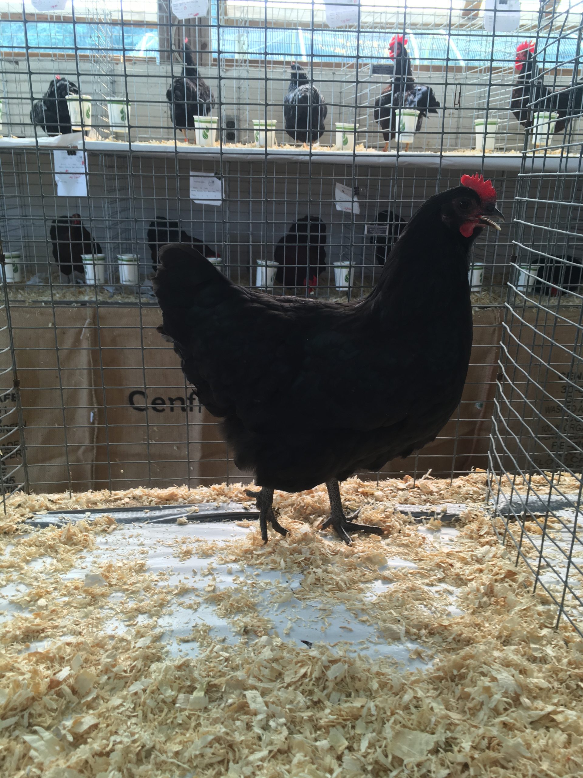 Champion large fowl was given to Ted Baker’s Rhode Island Red hen (CH American) and reserve large fowl was to a pretty black australorp pullet (Champion English) from Ali Yildizalp.