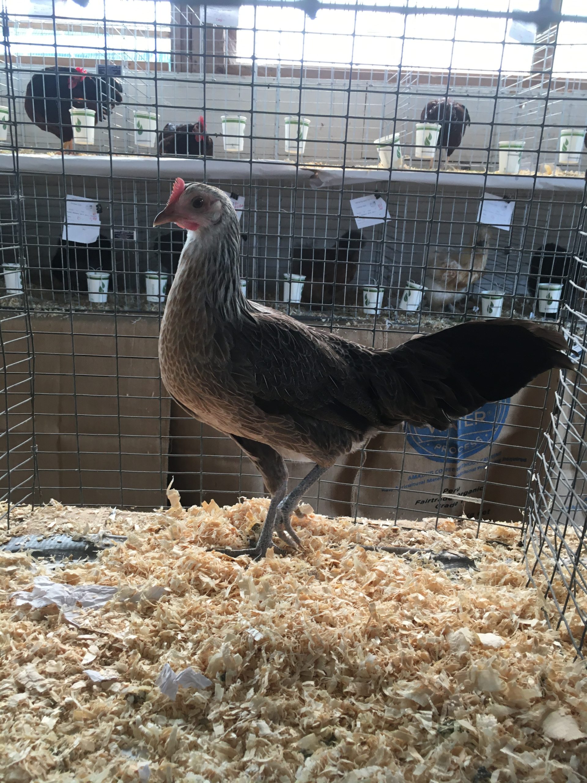 Champion SCCL and reserve went to two of Izzy Nowell’s bantam RIR cockerels and champion RCCL to Ramona Trombley’s partridge wyandotte pullets. Champion feather legged went to junior Heidi Magnus Fischer’s lovely little Belgian bearded d’uccle pullet (reserve to Dorothy Copeland’s Belgian bearded d’uccle cockerel)
